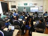 2/18、5時間目にCBT(Computer Based Test)の検証授業が行われました。来年度からCBTによる学力調査が行われるため、その事前検証となる授業でした。生徒はタブレット端末を使いこなしてテストを受けることができていました。