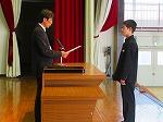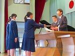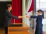 本日、令和7年度の修了式が行われました。まず最初に、1・2年の代表生徒に修了証書が授与されました。