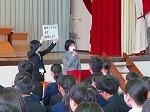 3/18に1学年の学年朝会が柔剣道場で行われました。