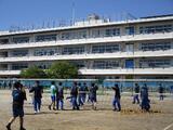 新学期初日の昼休みは2,3年生がそれぞれ外で元気に遊ぶ様子が見られました。