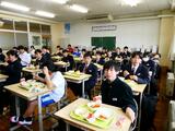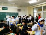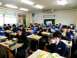 初めての給食です。お代わりをする生徒がたくさんいました。「入学おめでとうクレープ」がおいしかったですね。