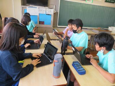総合的な学習の時間、2泊3日の修学旅行を振り返り、グループごとにスライドにまとめる学習がスタートしました。この内容は、7月の授業参観時に発表予定ですので、多くの保護者の皆さまに観ていただけると嬉しいです。