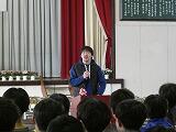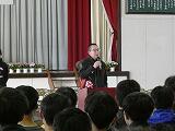本日(3/11)の朝、全校朝会が行われました。はじめに、表彰関係についての説明がありました。そして、春休みまでの過ごし方について話がありました。