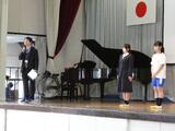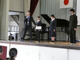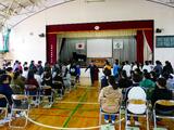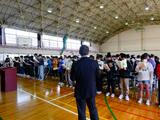 体育館において、中学生としての身だしなみについてや通学方法、部活動についてのガイダンスを聴きました。生徒会役員の生徒たちが分かりやすく説明してくれ、新入生は真剣な表情で聞くことができました。また、入学式の練習も行いました。起立、礼のタイミングを合わせたり、校歌の練習をしたり、1つひとつの動きややるべきことを確認する姿が見られました。中学生としての自覚が芽生え始めているなと感じられました。